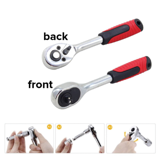 BIZTONSÁG: mindegyik hosszabbító, gomb, racsnis és kardán csukló golyóval van ellátva, amely megakadályozza a fedőlapra eső kupak kiesését – javítja a munka hatékonyságát, csökkenti a kényelmet és a biztonságot, mivel a kupak munka közben nem esik ki.