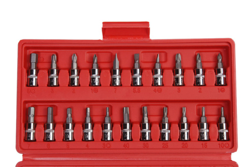 A készlet számos adapterrel, csavarhúzóval, hosszabbítókkal (rugalmasan is), univerzális csatlakozóval, adapterrel és racsnisszal van felszerelve, amelyek kapcsolóval rendelkeznek, amely lehetővé teszi a forgásirány gyors és egyszerű megváltoztatását.