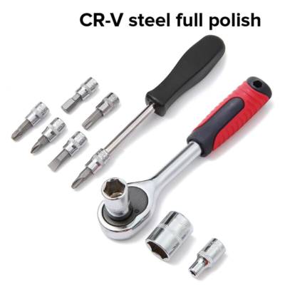 A készlet minden alkatrésze króm-vanádium acélból készült, ami tartós.