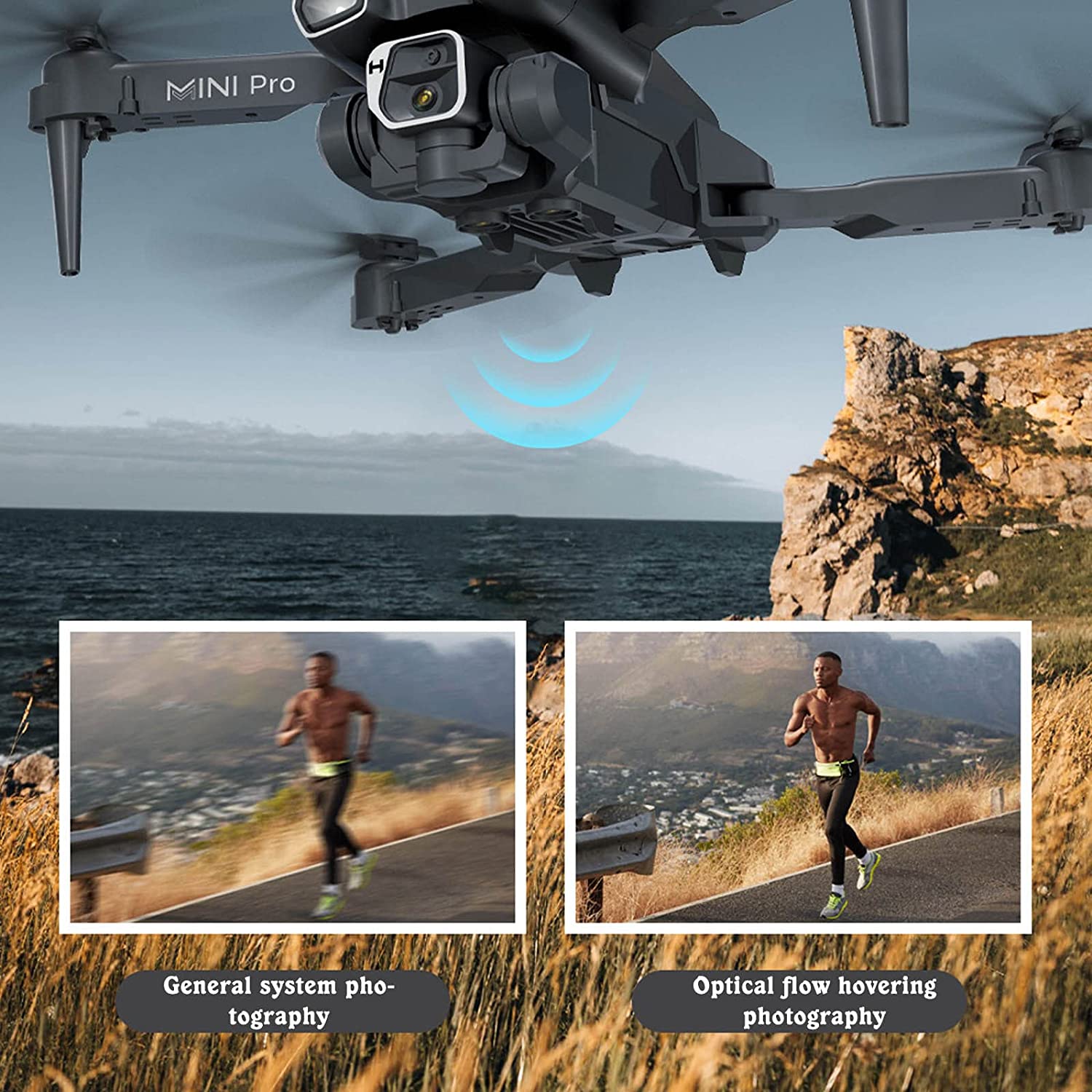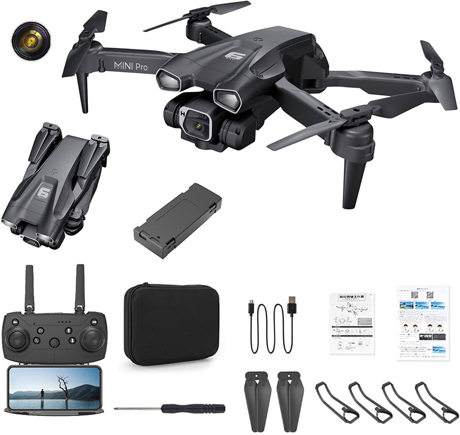 Kétkamerás, összecsukható drón, 1080p, Wi-Fi, távirányító telefontartóval, fekete, VR szemüveg funkció